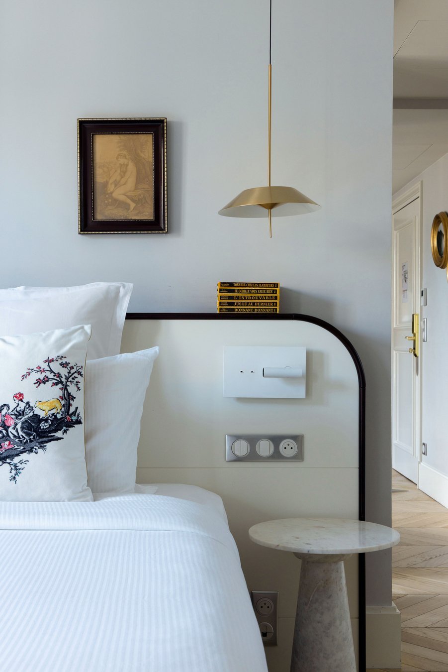 In a calm and contemporary atmosphere, the Afterworks Suite offers a refined haven in the heart of Paris. Recently renovated, this suite features premium amenities and services: a king-size bed, a bright bathroom with a beautiful walk-in shower and eco-friendly bamboo fiber towels, ultra high-speed Wi-Fi, and a flat-screen TV. All our suites also include a convertible sofa.